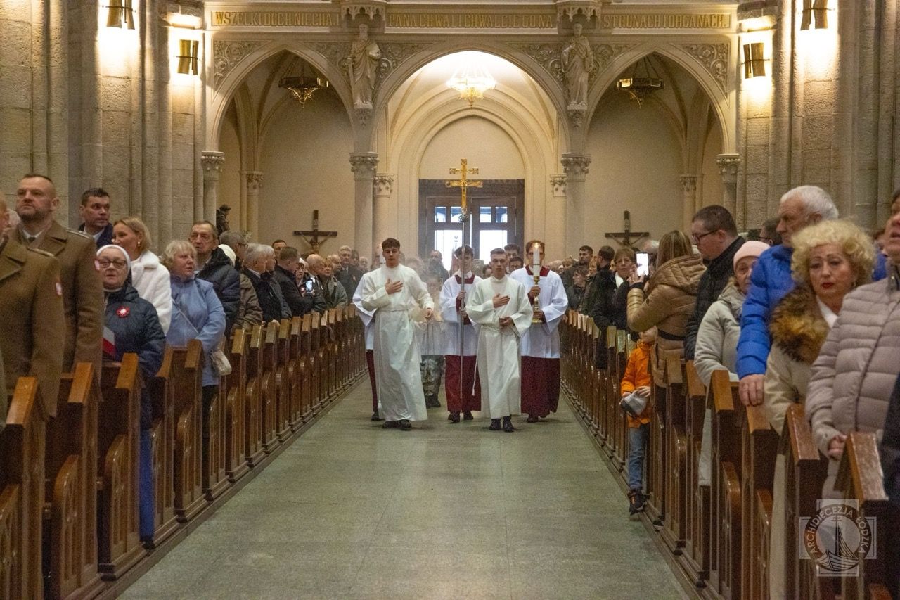 Obchody Narodowego Święta Niepodległości w Łodzi rozpoczęły się we wtorek, 11 listopada 2025 r., od uroczystej Mszy św. sprawowanej w intencji Ojczyzny w Bazylice Archikatedralnej. Po Mszy św. na Placu Katedralnym odbyły się uroczystości państwowe przed płytą Grobu Nieznanego Żołnierza. Mszy św. w intencji Ojczyzny przewodniczył Grzegorz Kardynał Ryś, metropolita łódzki. W modlitwie uczestniczyli przedstawiciele władz państwowych i samorządowych, organizacji i środowisk kombatanckich, władzy ustawodawczej, wykonawczej, sądowniczej, obecni byli przedstawiciele łódzkich uczelni, konsulów honorowych, służb mundurowych, związków zawodowych, partii politycznych, organizacji i stowarzyszeń.